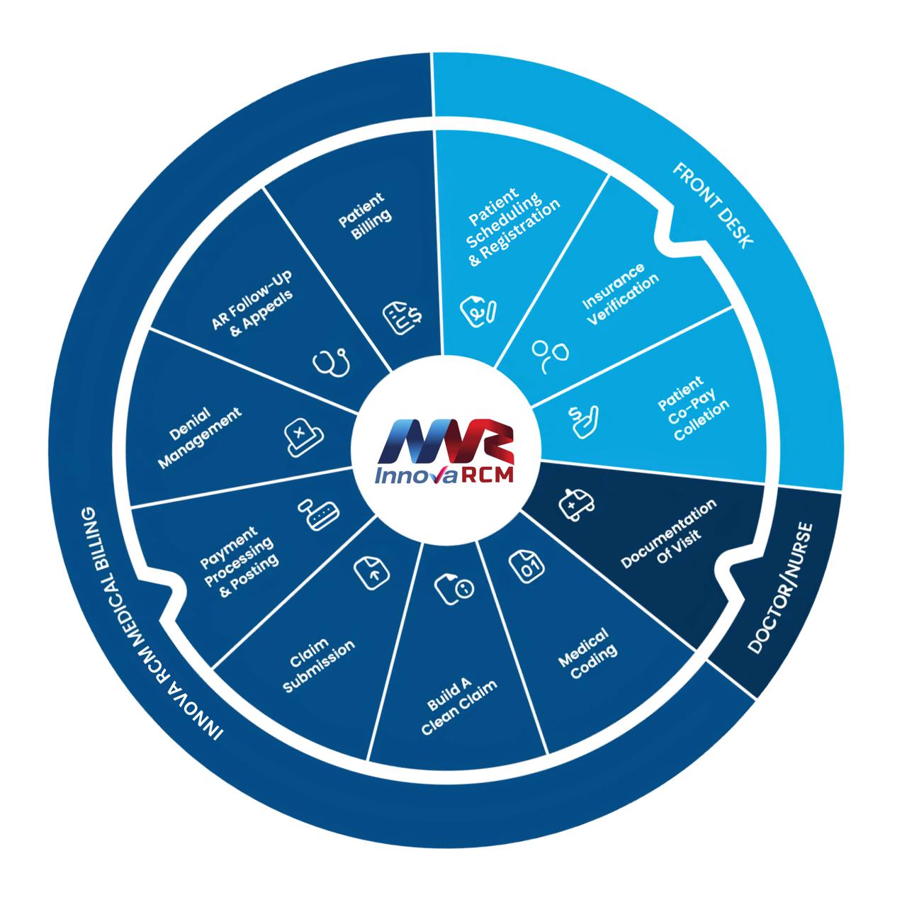 InnovaRCM provides complete RCM solutions that streamline operations, enhance billing accuracy, and improve collections. From front desk support to credentialing, medical billing, and documentation services, we ensure smooth workflows, fewer denials, and stronger financial performance.